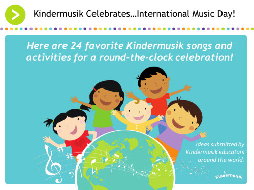 But in honor of the day especially set aside for a worldwide celebration, we are delighted to share 24 favorite Kindermusik activities to help you sing, sway, dance, and play your way through all 24 hours of International Music Day.