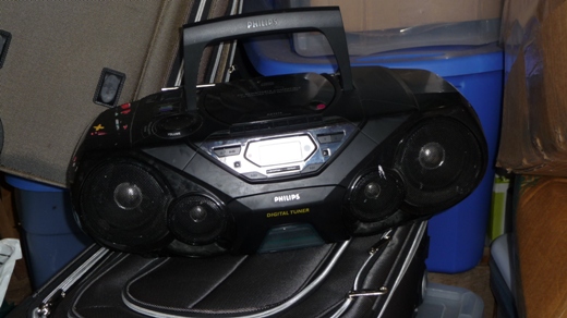In our backyard, we have a shed. In it are the garden tools, the suitcases, the outdoor toys, a bag of Natalie’s outgrown clothes I’m saving for her cousin, and, I noticed, as I went to put a box of Playmobil away, the kids’ old portable CD player.